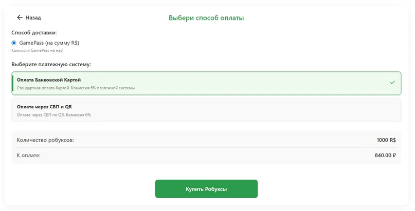 Примечание: ранее в оформление заказа была написана сумма, которую нужно указать в цене GamePass. Введя ее, с низу должно появится число робуксов которое вы получите (которое вы купили), если это число не равняется сумме робуксов которое вы указывали при покупке, то скорректируете цену GamePass.