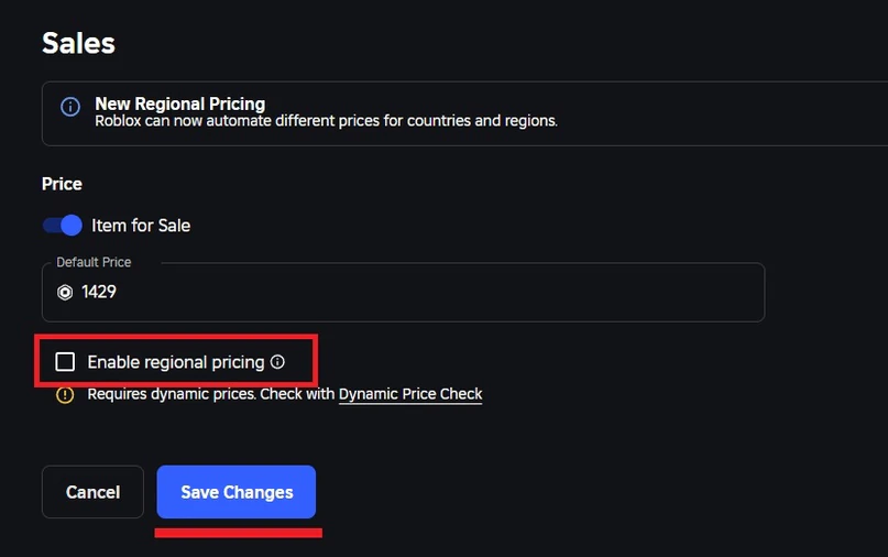 ОБЯЗАТЕЛЬНО ПРОВЕРЬТЕ, ЧТО ГАЛОЧКА «Enable regional pricing» НЕ ПОСТАВЛЕНА / ОТКЛЮЧЕНА, иначе Вам придет меньше робуксов